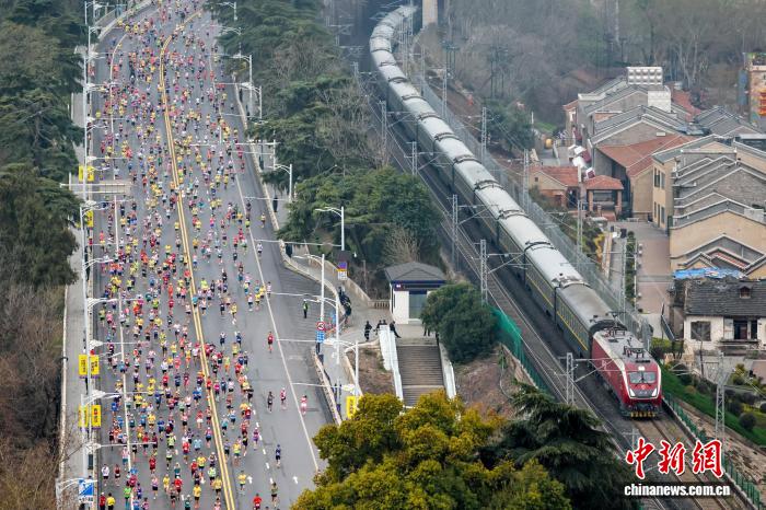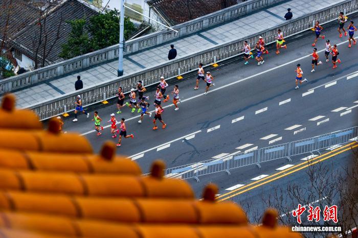 图为参赛选脚跑过武汉陌头。中新社记者 弛畅 摄